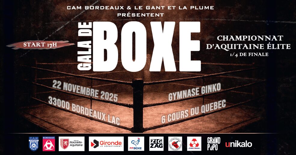 La section Boxe du Club Athlétique Municipal de Bordeaux, en partenariat avec Le Gant et la Plume, organise ce samedi 22 novembre dès 17h un événement sportif incontournable : le Gala de Boxe.