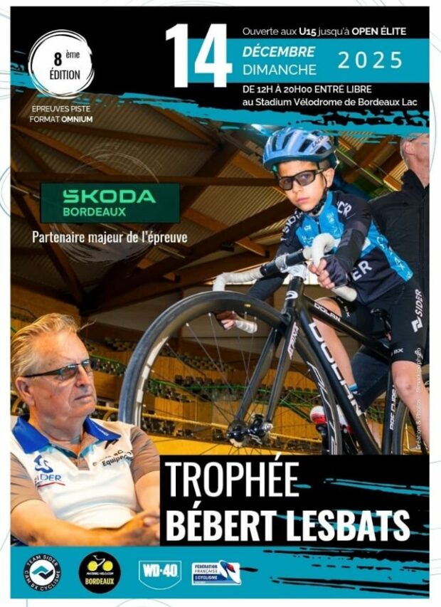 Le CAM Cyclisme, alias Team Sider Cam Bx, vous invite à la 8ᵉ édition du Trophée Bébert Lesbat, qui se tiendra le dimanche 14 décembre 2025 au vélodrome de Bordeaux-Lac. Cet événement promet une journée sportive exceptionnelle, rythmée par des épreuves allant des U15 jusqu’aux Élites.
